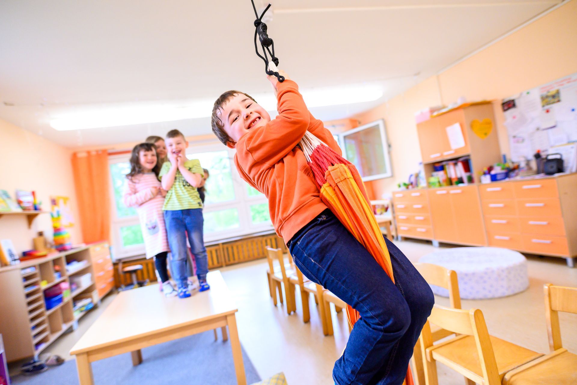 Die Kindertagesstätte verfügt über einen Sportraum und einen Bewegungsraum. Gemeinsam Freude am Bewegen wecken, das liegt uns am Herzen.